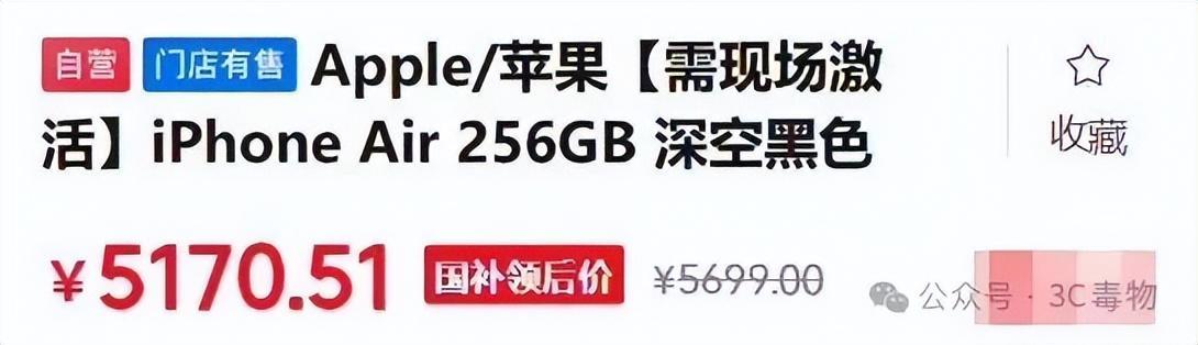 如果叠加国补优惠,那么iPhone Air的售价只需要5170元即可入手。