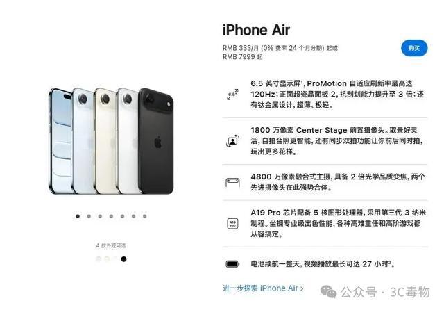 让人意外的是,iPhone Air先热后冷,销量表现差强人意。