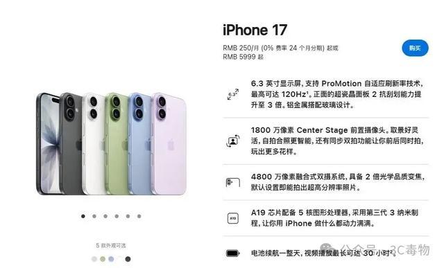 苹果官方发布的价格,iPhone17为5999元。